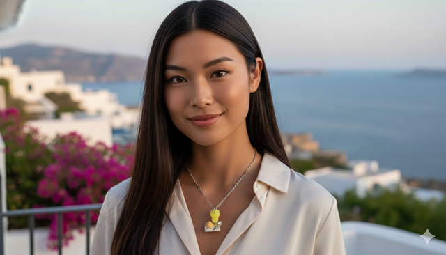 Questa collana cattura l'essenza della colazione isolana per eccellenza: la granita al limone, fresca e cristallina, accompagnata dalla fragrante brioche col tuppo. Un gioiello "Food" che profuma di sole e vacanze.