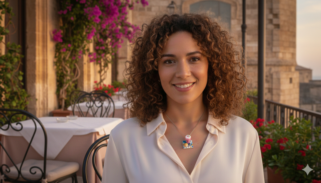 Questa collana cattura la variante più golosa della colazione siciliana: la granita alla fragola, fresca e fruttata, sormontata da una nuvola di panna montata e accompagnata dalla fragrante brioche col tuppo. Un gioiello che mette allegria solo a guardarlo.